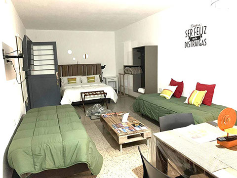 De 1 ambiente, amplio y confortable, dispone de 1 cama matrimonial y dos individuales con balcón.