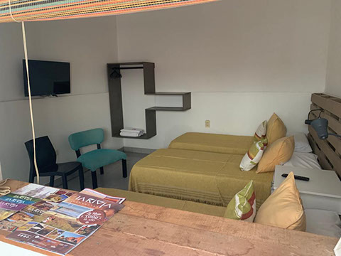 De 1 ambiente, amplio y confortable, dispone de 1 cama matrimonial y dos individuales con balcón.